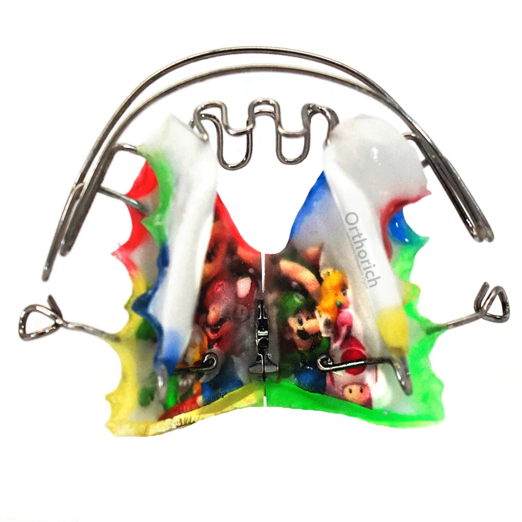 Simoes Network 3 (SN3), también conocido como Modelo de Aletas Inferiores, actúa directamente en la mandíbula y controla la acción de la lengua favoreciendo así el cambio de la postura1. Es extremadamente eficaz en la corrección de la mordida abierta, estimulando el sellamiento labial y reposicionando la lengua con sus aletas de acrílico inferior.